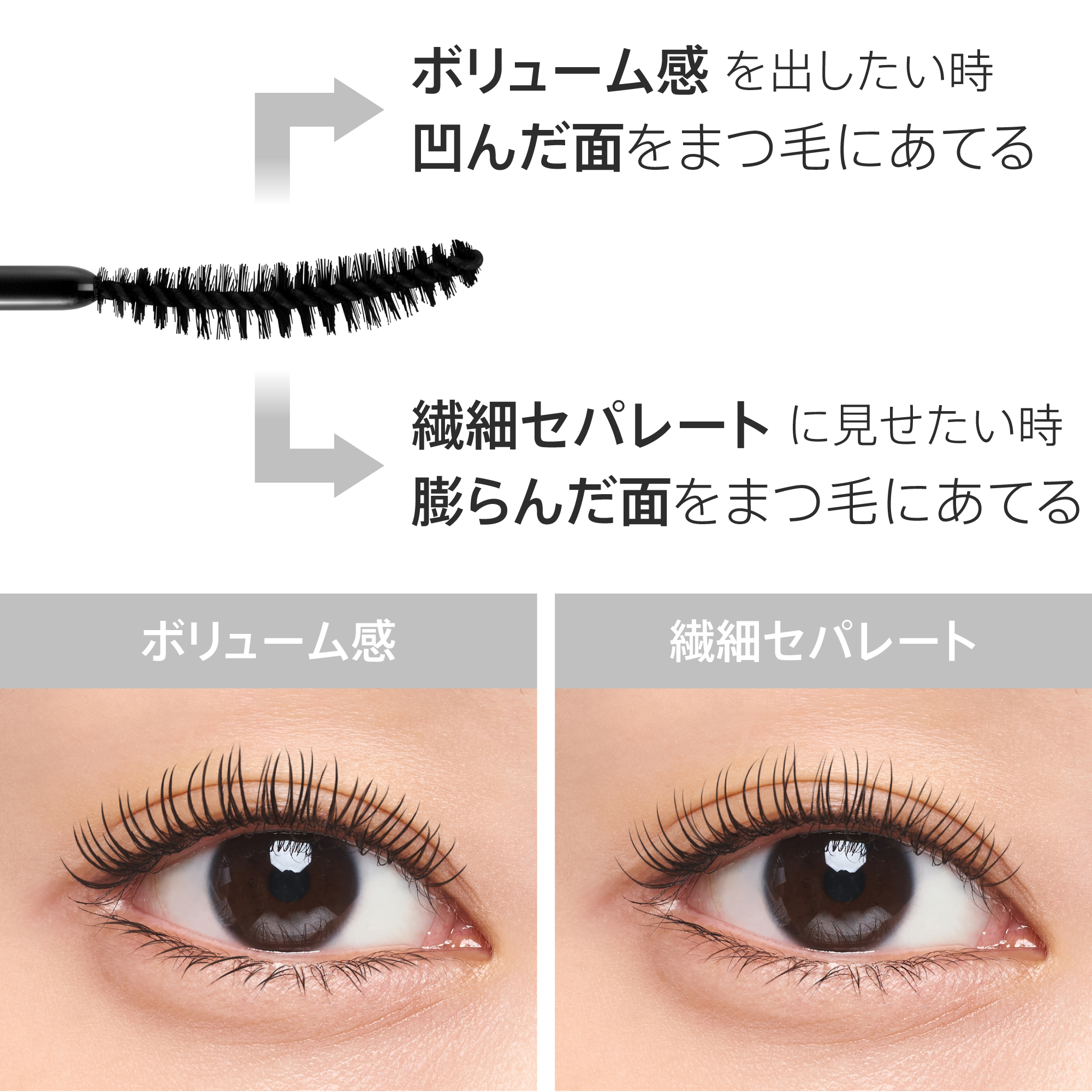 • ダマになりにくく、一本一本セパレートしたまつげを叶えるブラシ
