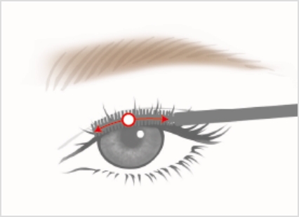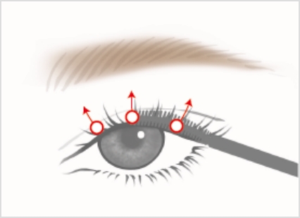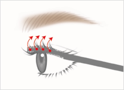 ブラシでまつ毛を持ち上げるようにして、まつげ毛をゆっくりとそらしながら塗布する。