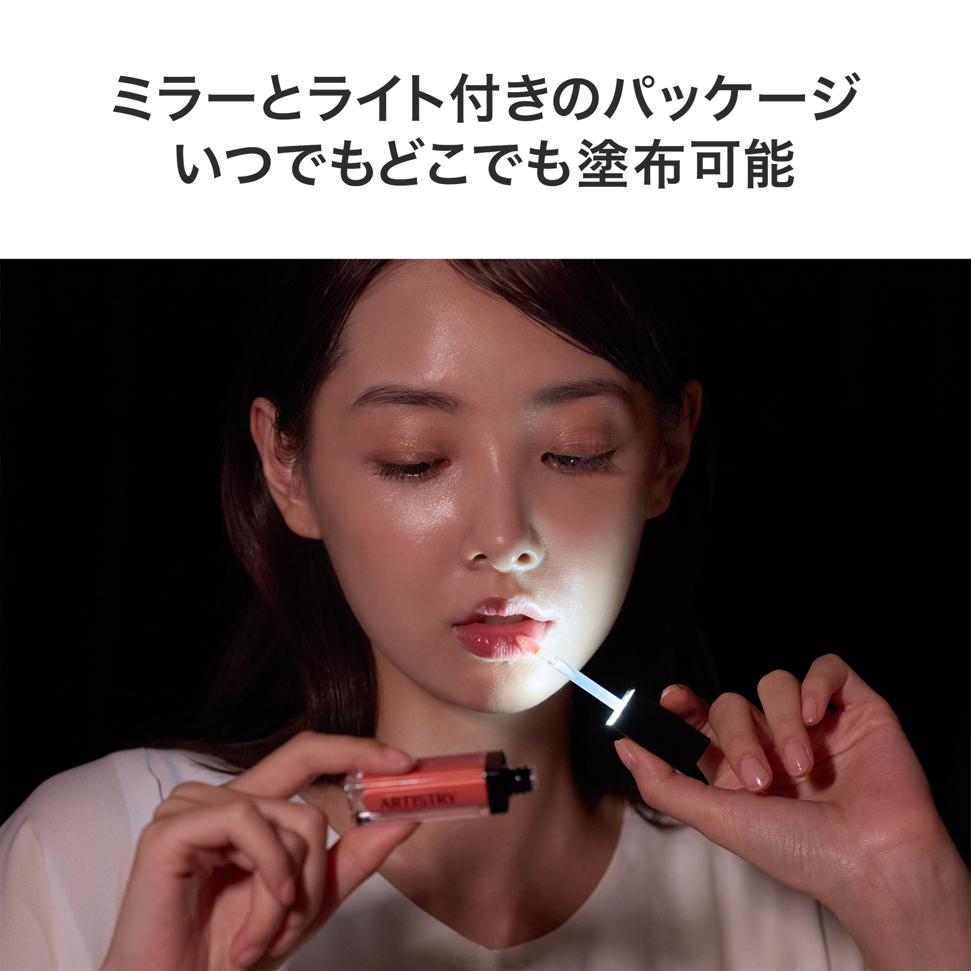 ミラー&ライト付きでどこでもひと塗り、毎日ポーチに忍ばせて。