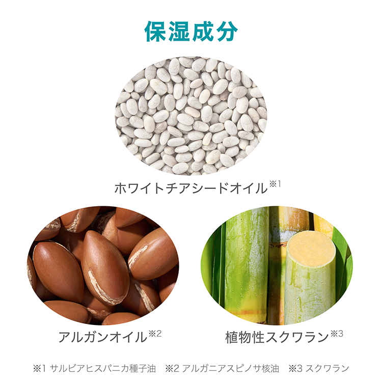 ※保湿成分(ホワイトチアシードオイル、アルガンオイル、植物性スクワラン、ココナッツオイル、メドゥフォームオイル、大豆オイル)