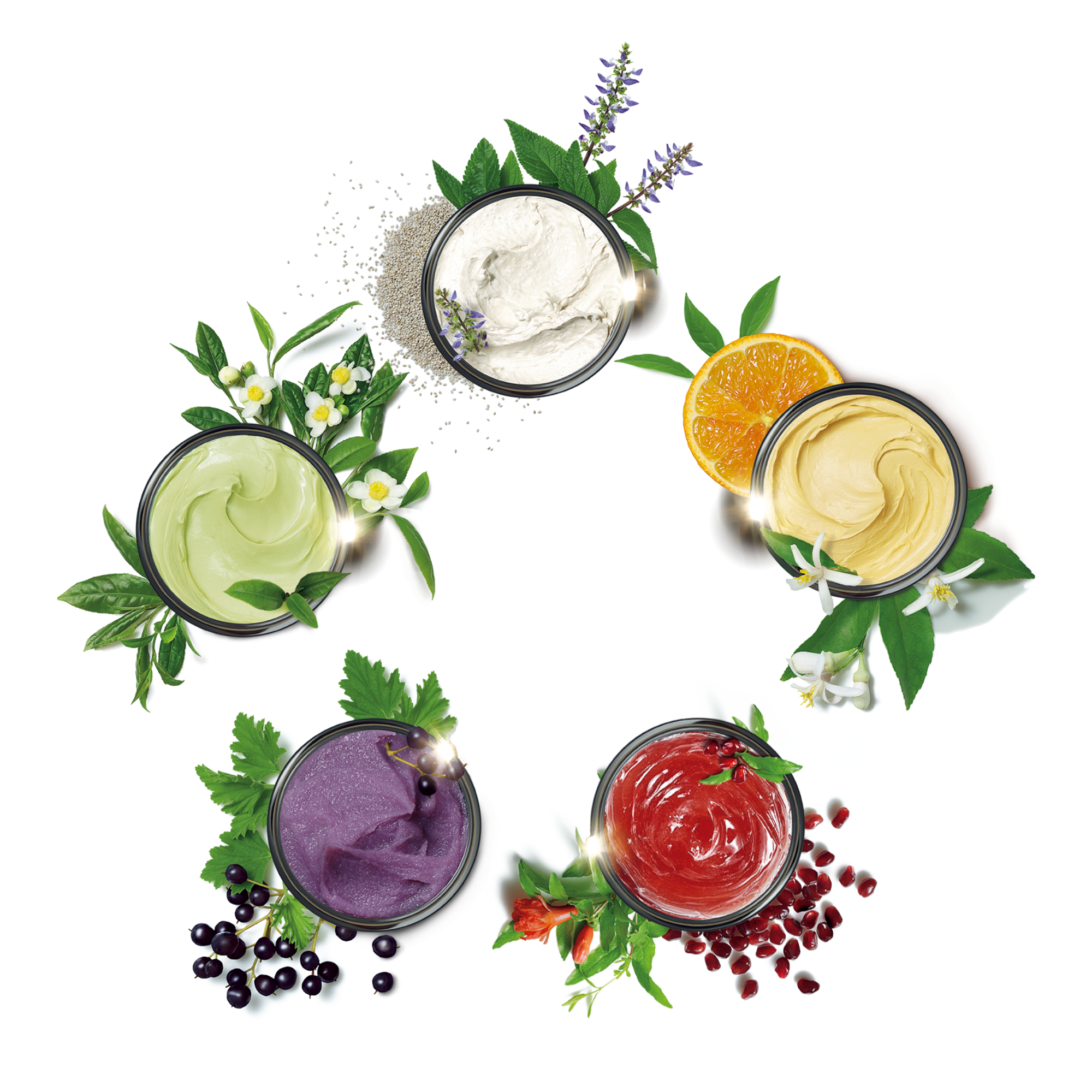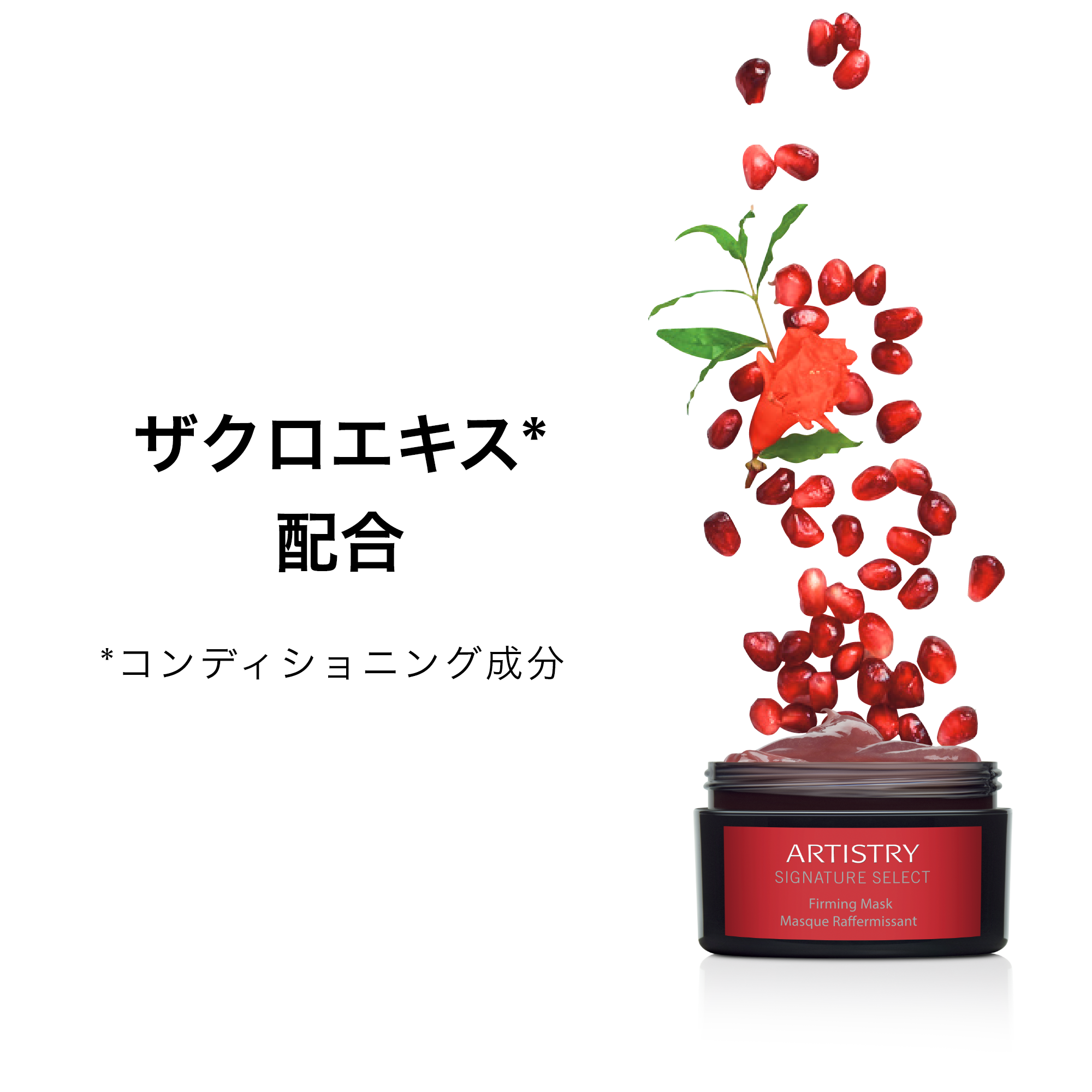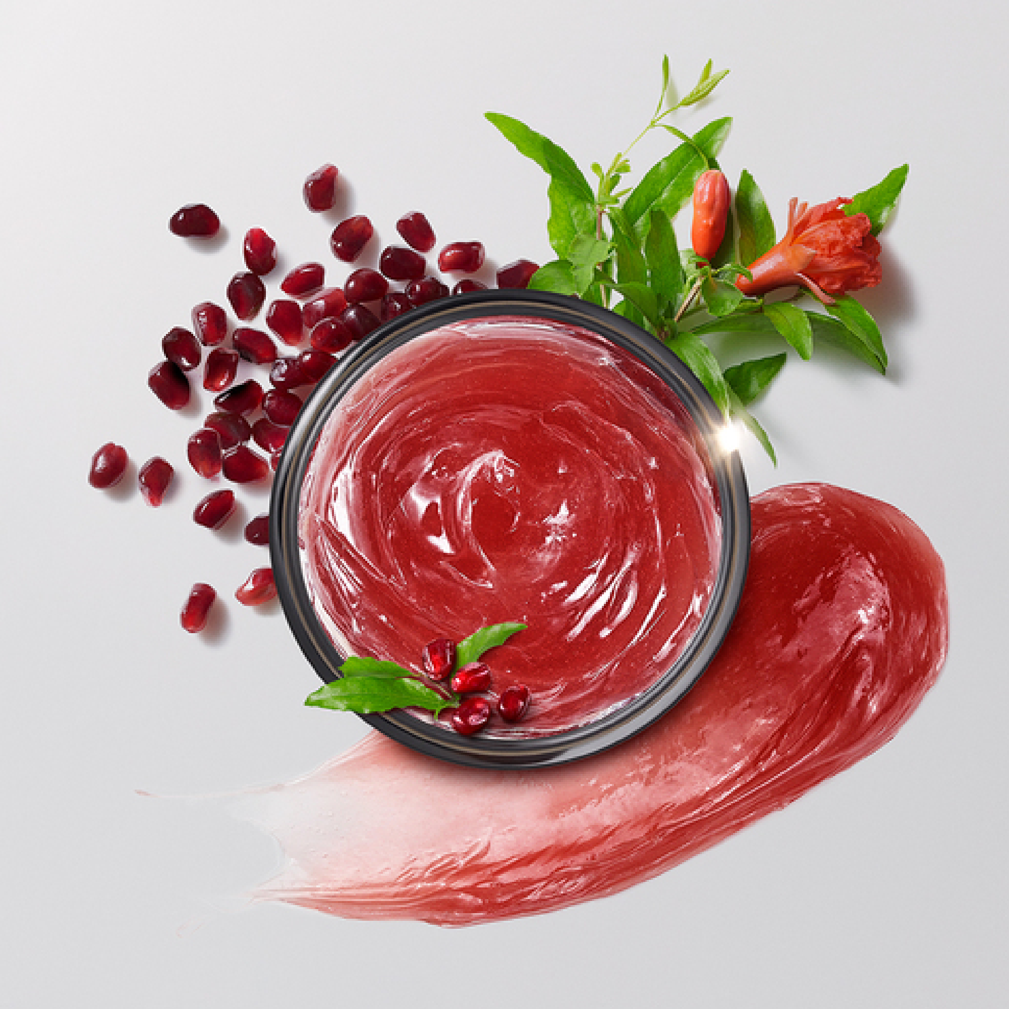 濡れた肌になじませると乳白色のクリームに変化し、じんわり温かくなるバームマスク。温かなジェルのマッサージ効果でハリに満ちた引き締まった印象へ。ザクロなど赤い果実の深く落ち着いた香り。