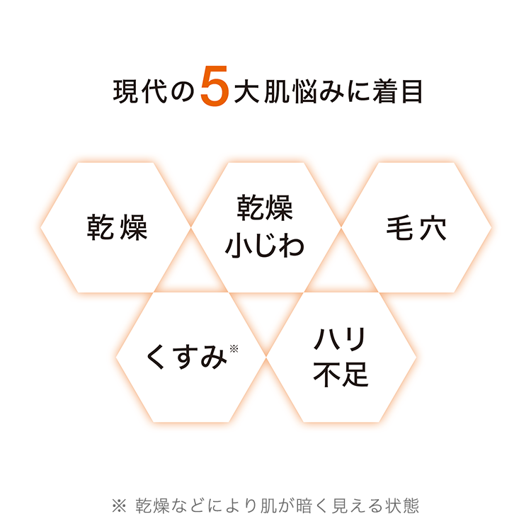現代の5大肌悩みに着目。