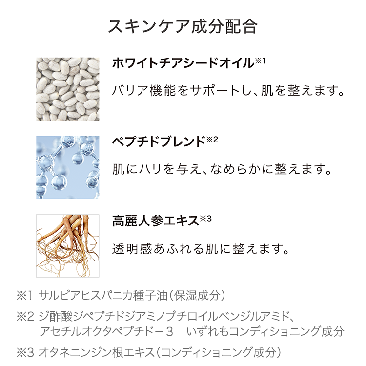 「乾燥」「乾燥小じわ」「毛穴」「くすみ※1」「ハリ不足」へ、マルチタスクに。最高濃度※2のビタミンC※3とヒアルロン酸※4、独自成分ホワイトチアシードオイル※5配合で全方位ケア。自活肌※6を究める。乾燥による小じわを目立たなくし※7、ハリとうるおいに満ちた透明感あふれる肌へ導きます。