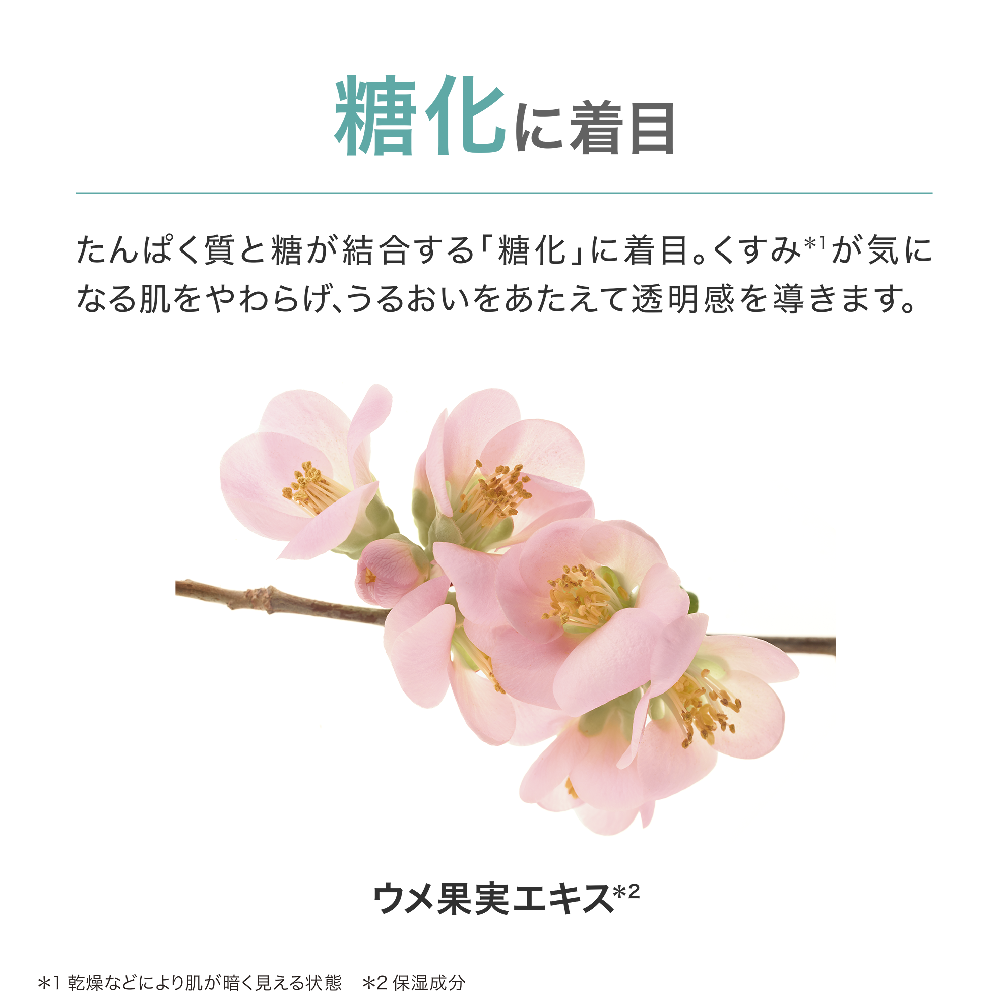 年齢を重ねた肌の黄ぐすみの原因となる糖化に着目。黄みが気になる肌を整え、明るく透明感のある肌へ導きます。